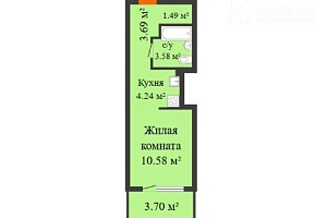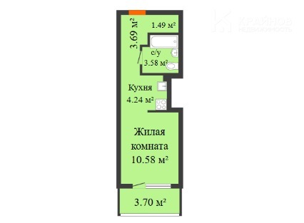Студия, общей площадью 27,4 кв.м (вместе с просторной лоджией 3,7 кв.м);