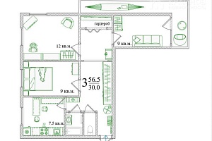 | Кол-во комнат | 3 |