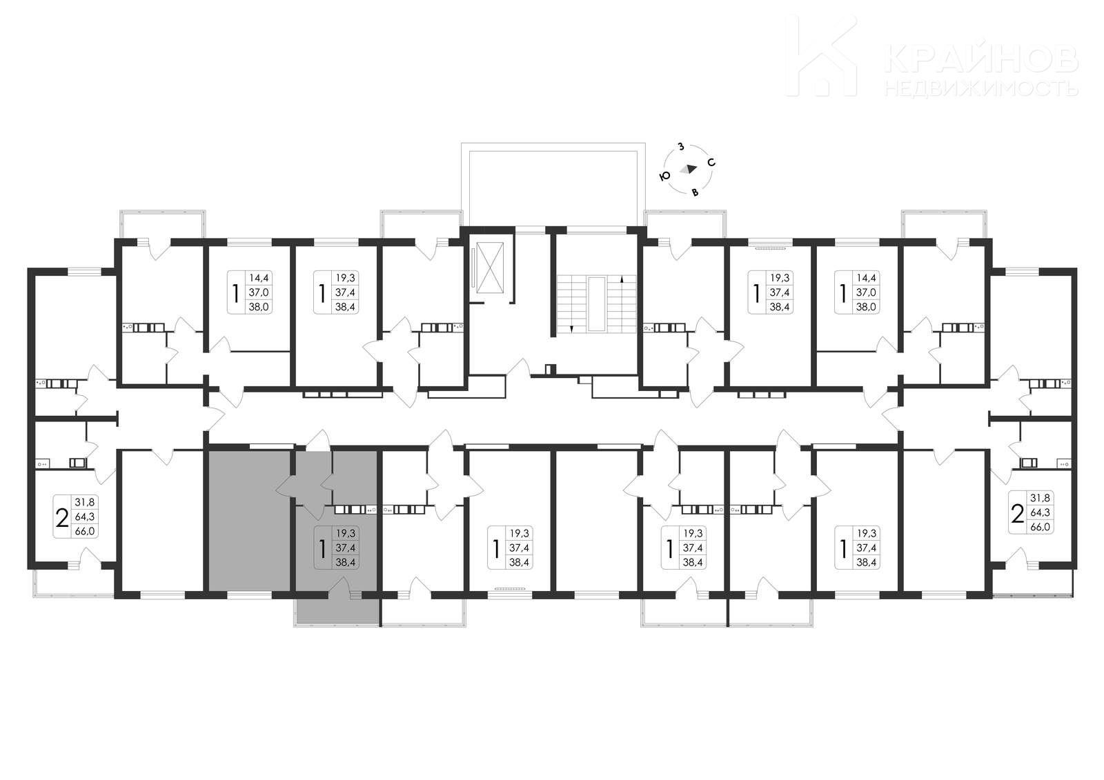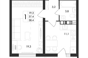 1-комн. квартира, 38.40 м², 2 этаж