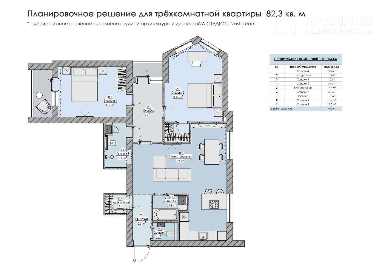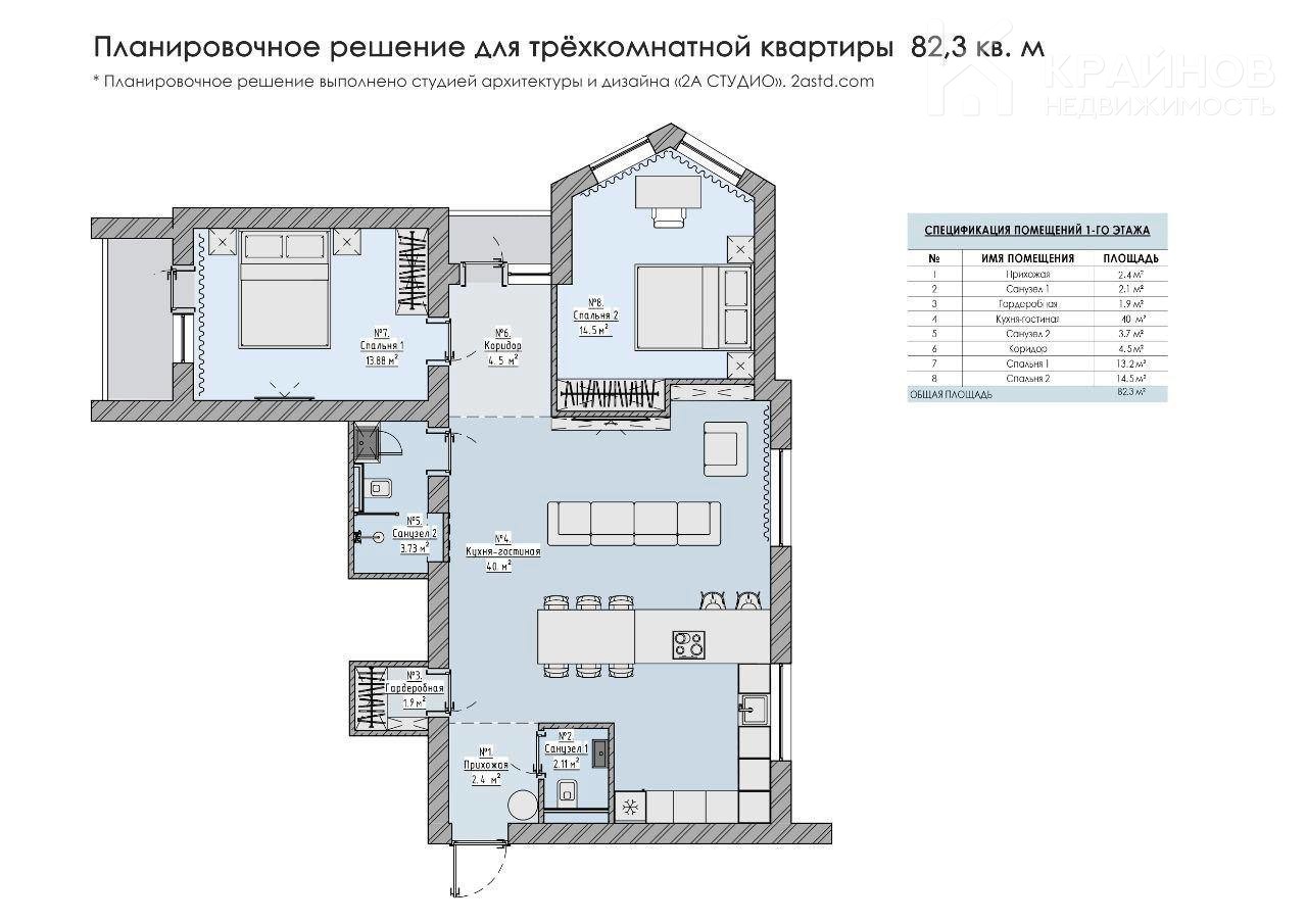Площадь — 83,3 кв.м