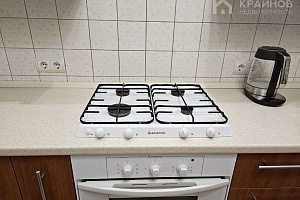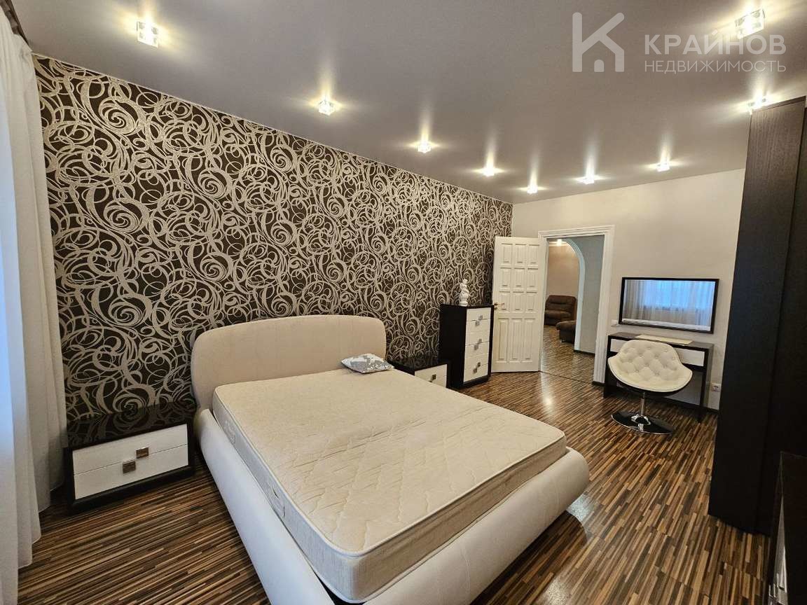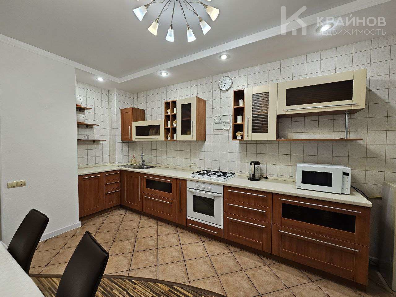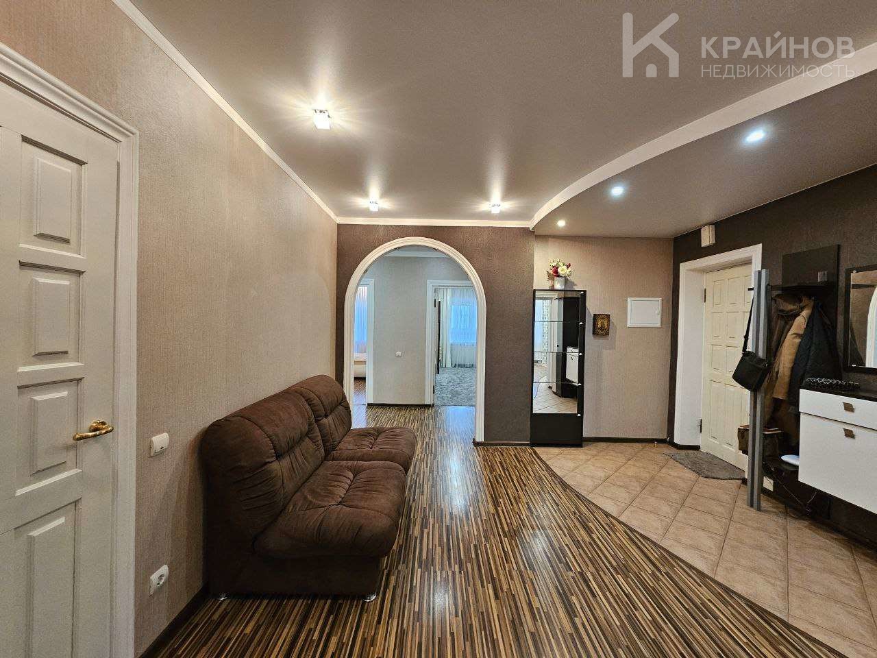 На полу ламинат, частично плитка на кухне и входной группой. Натяжные потолки, в детской постелен новый ковролин. В зале поклеены дорогие обои. На кухне мягкие декоративные обои, под покраску. Установлены межкомнатные деревянные двери. На кухне хорошая техника – Ariston, Whirlpool. Сантехника в хорошем состоянии.