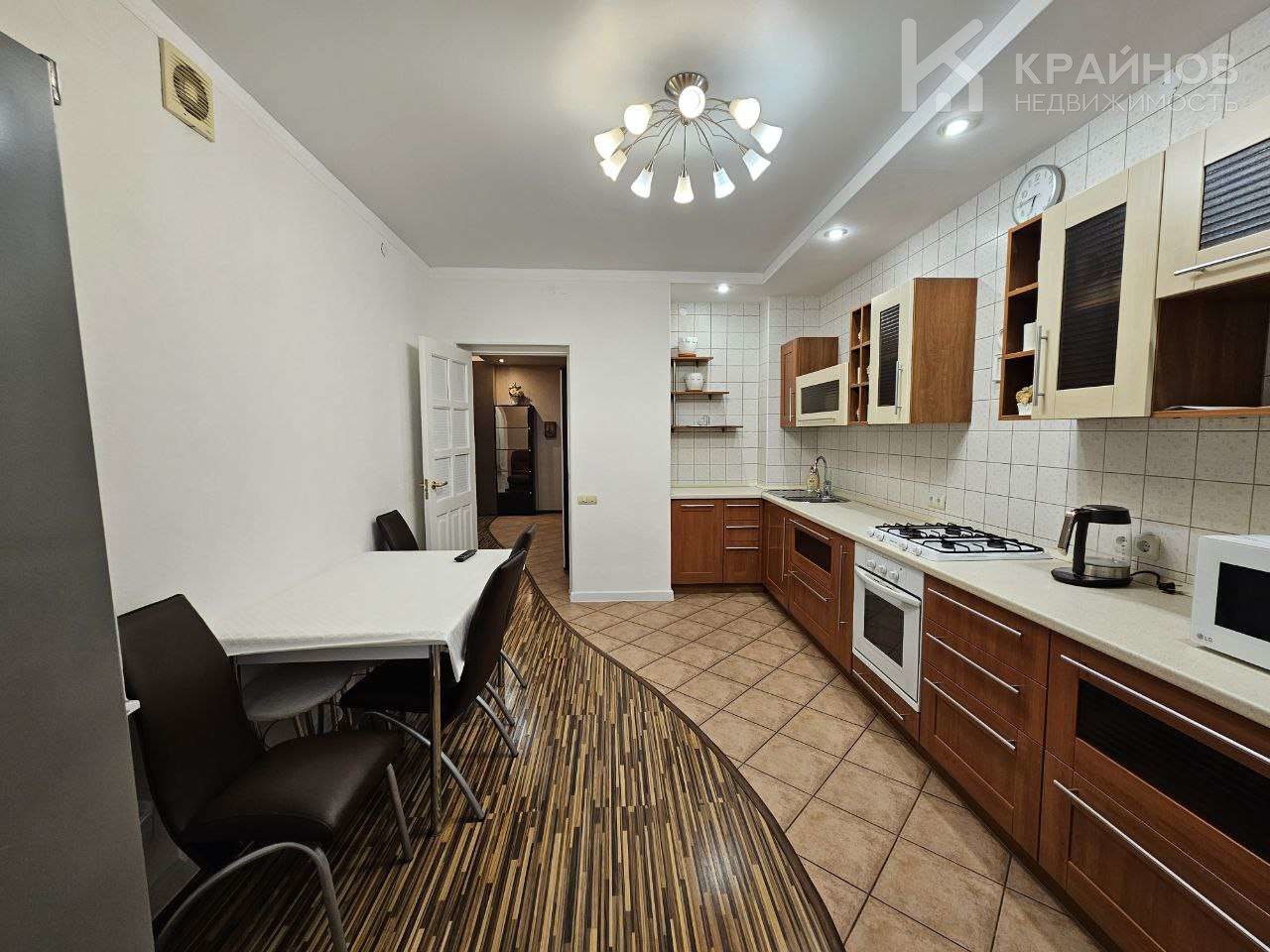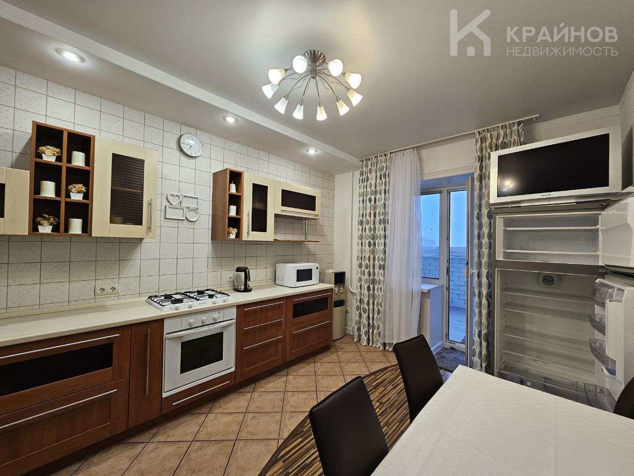 Очень просторная квартира на 2 стороны, в каждой комнате выход на балкон или огромную лоджию, которая соединяет зал и кухню.