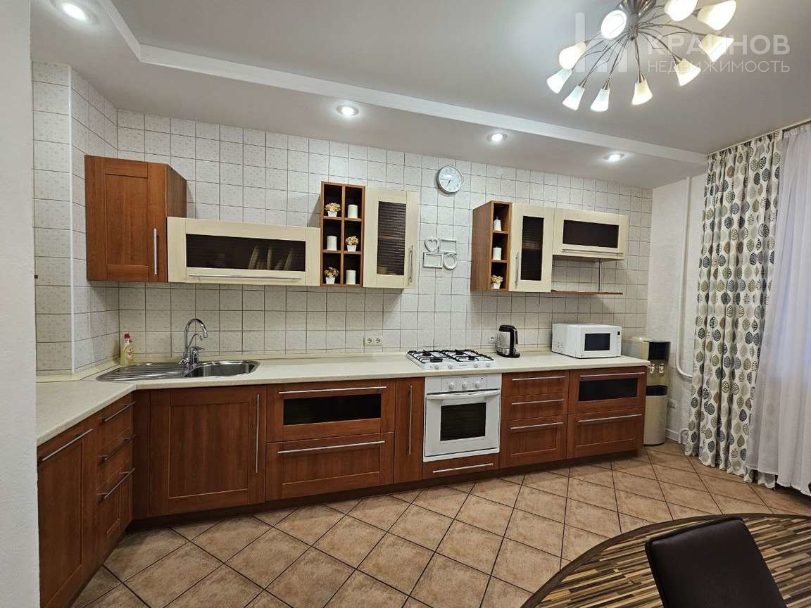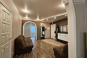 В квартире выполнен евроремонт. Все комнаты с выходом на балконы или лоджию, кухня и зал объединены большой лоджией для отдыха.