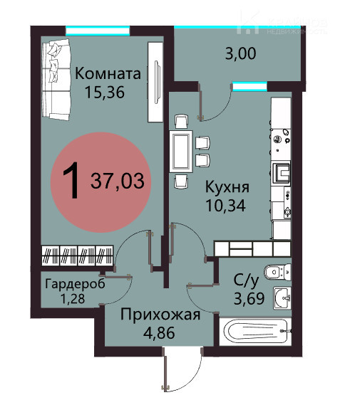 | Площадь | 37.03 |