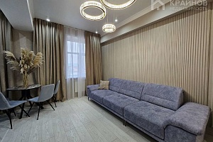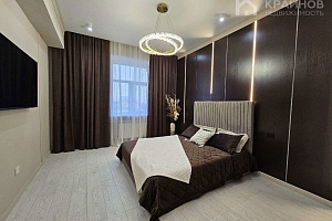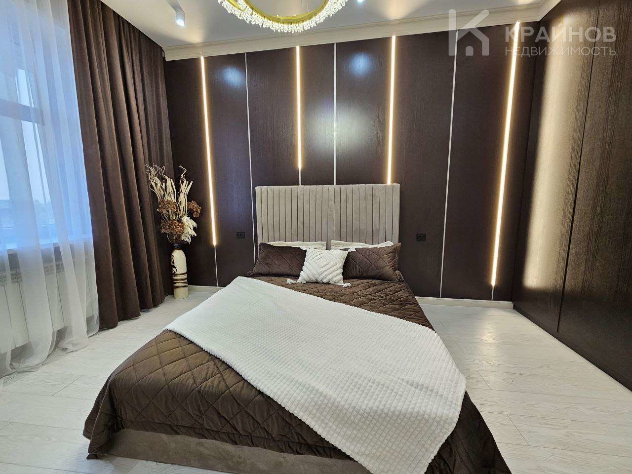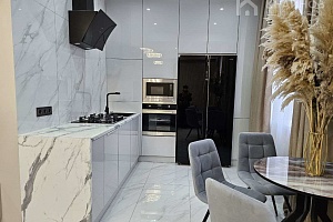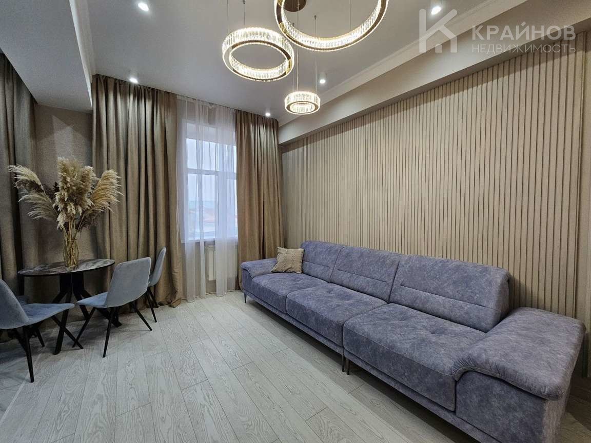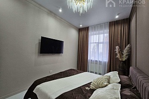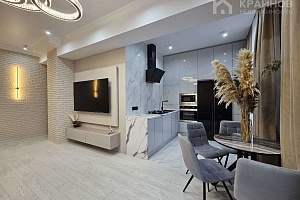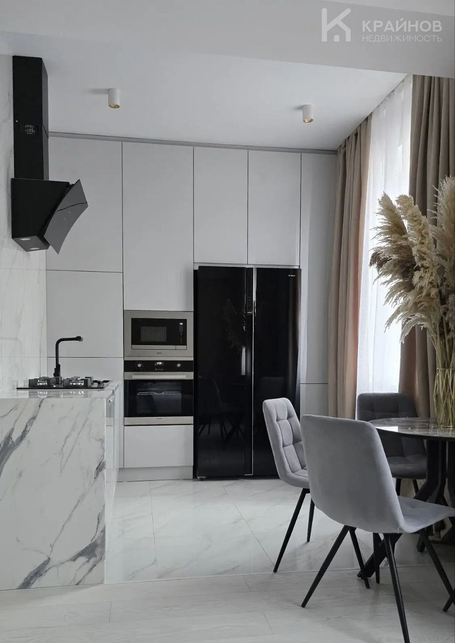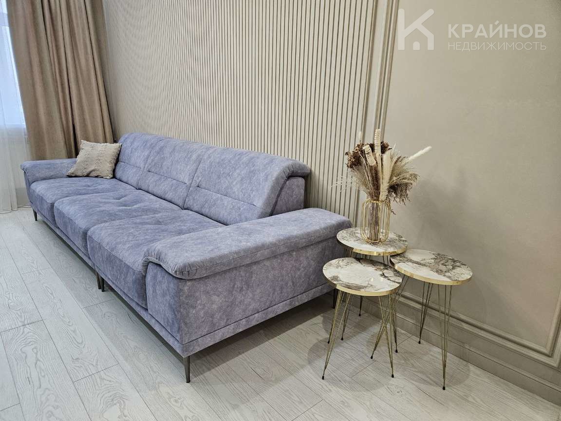 Квартира с Дизайнерским, современным ремонтом. Полностью укомплектована для жизни. Большие шкафы до потолка, стильная спальня. Кухня укомплектована мебелью и техникой. Есть посудомоечная машина, духовой шкаф, микроволновая печь, большой холодильник. Установлена новая колонка. Установлены телевизоры в каждой комнате. В гостиной установлен большой телевизор и стильный, дорогой, современный диван.