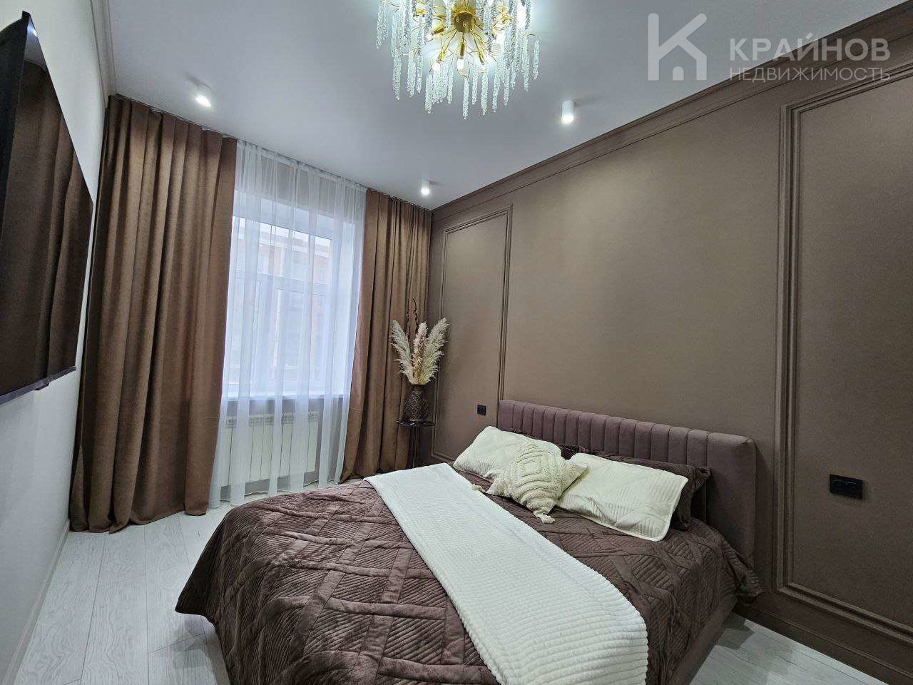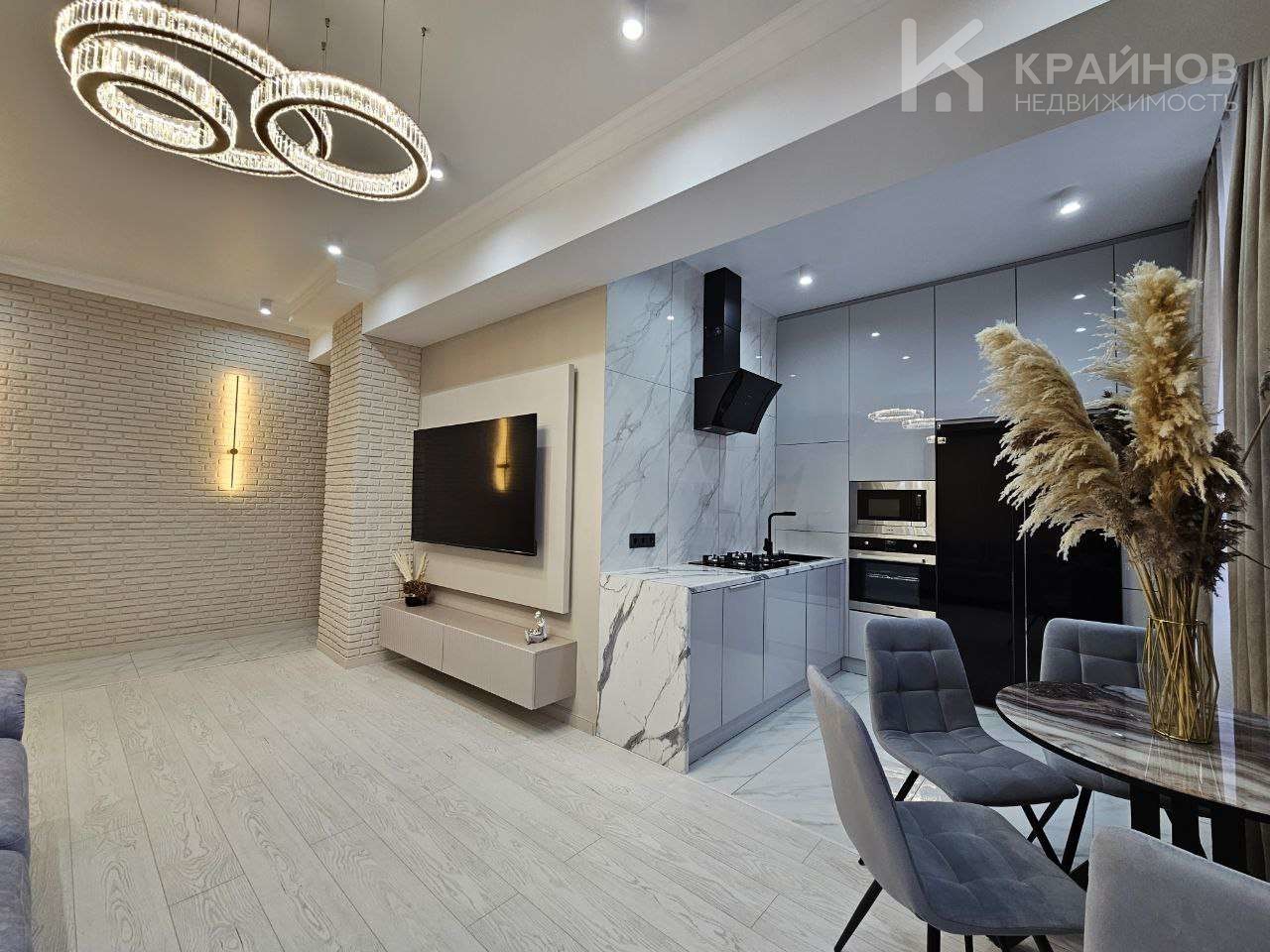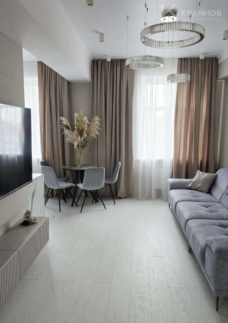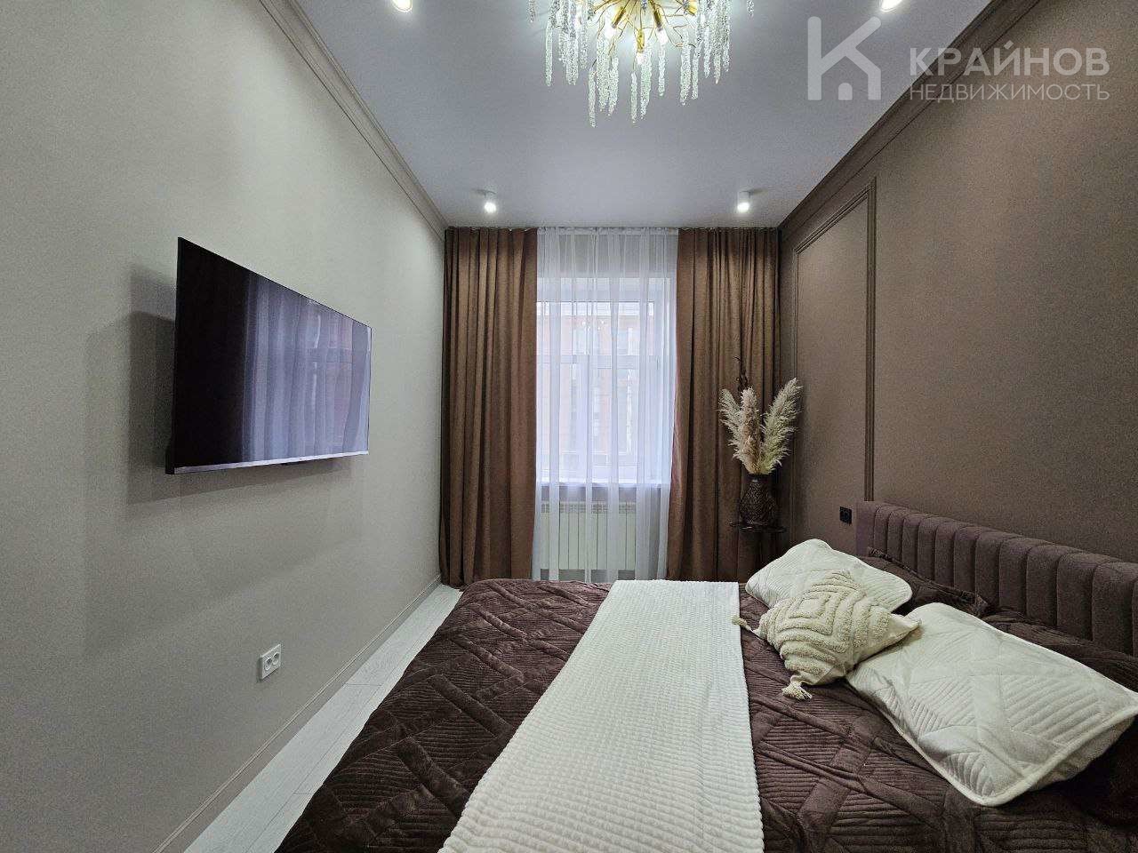Квартира с Дизайнерским, современным ремонтом. Полностью укомплектована для жизни. Большие шкафы до потолка, стильная спальня. Кухня укомплектована мебелью и техникой. Есть посудомоечная машина, духовой шкаф, микроволновая печь, большой холодильник. Установлена новая колонка. Установлены телевизоры в каждой комнате. В гостиной установлен большой телевизор и стильный, дорогой, современный диван.
