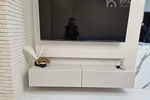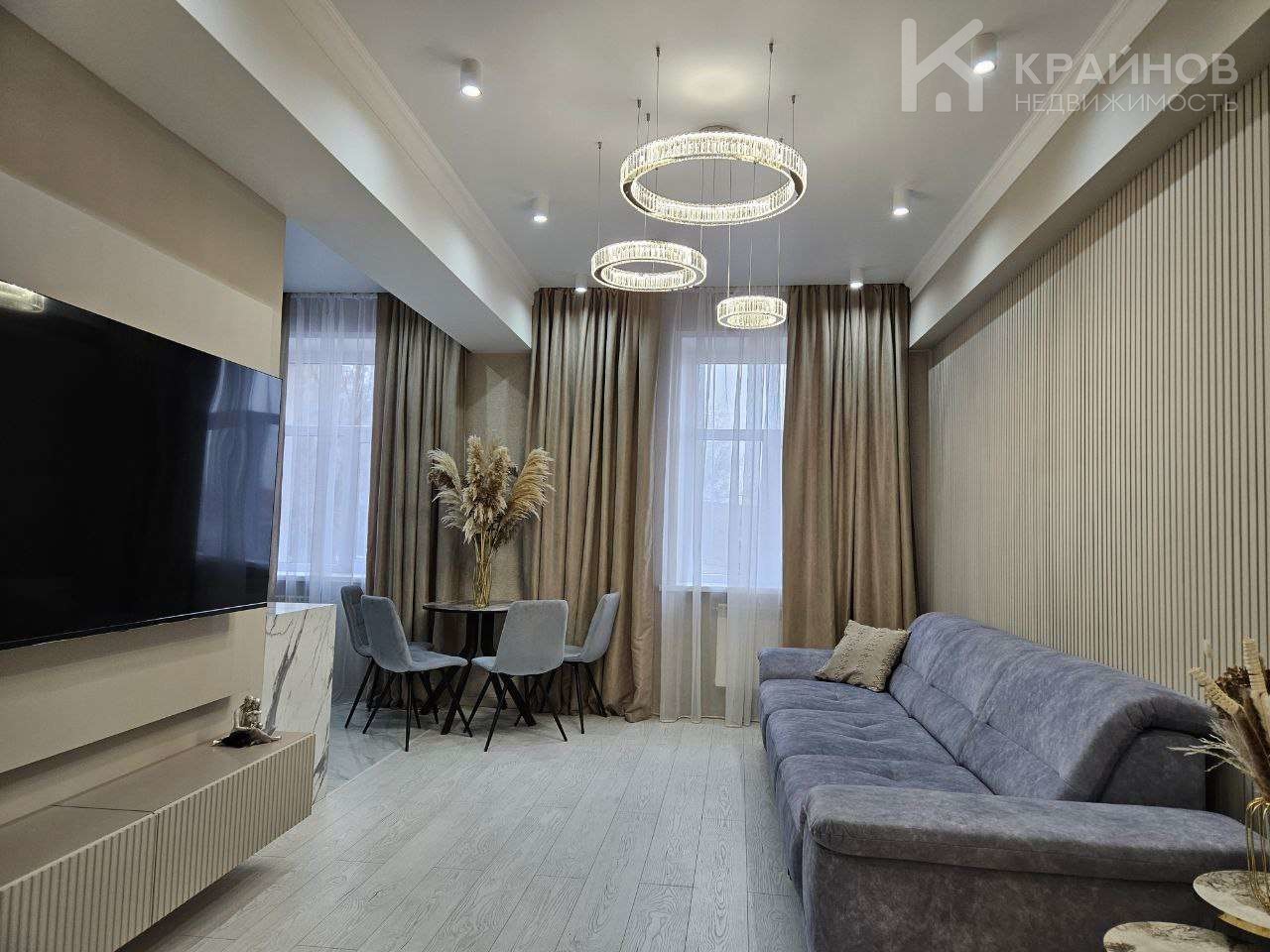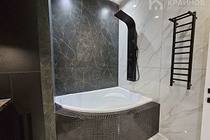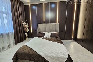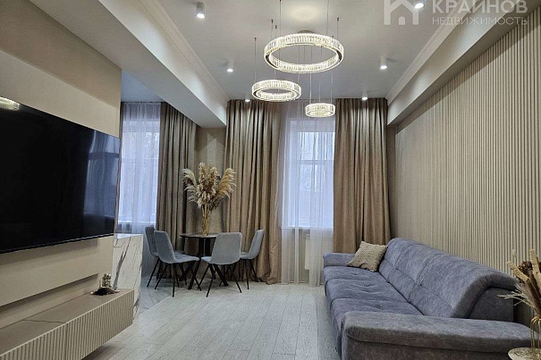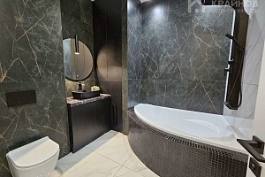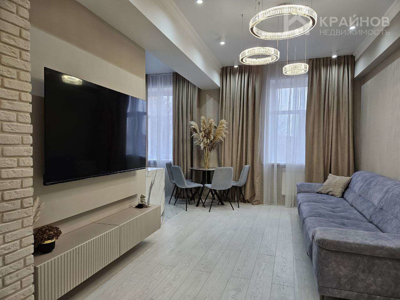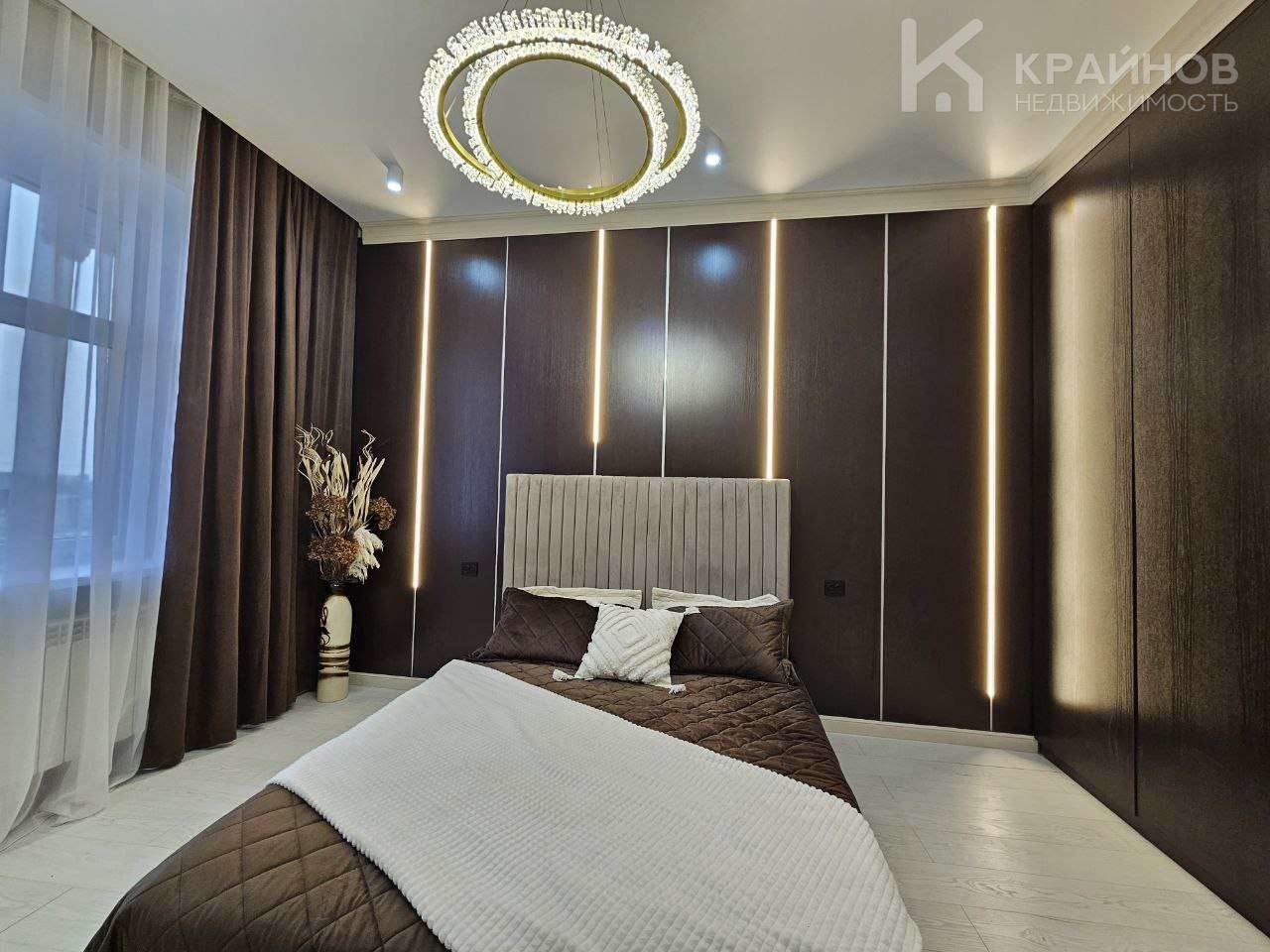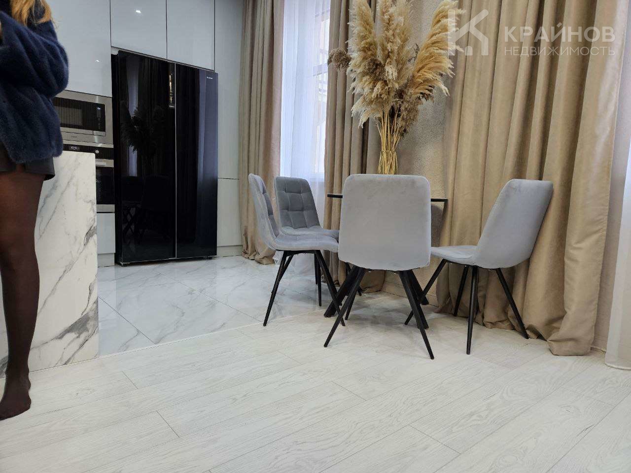 Квартира с Дизайнерским, современным ремонтом. Полностью укомплектована для жизни. Большие шкафы до потолка, стильная спальня. Кухня укомплектована мебелью и техникой. Есть посудомоечная машина, духовой шкаф, микроволновая печь, большой холодильник. Установлена новая колонка. Установлены телевизоры в каждой комнате. В гостиной установлен большой телевизор и стильный, дорогой, современный диван.