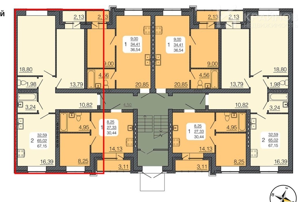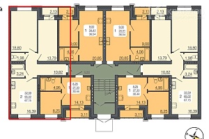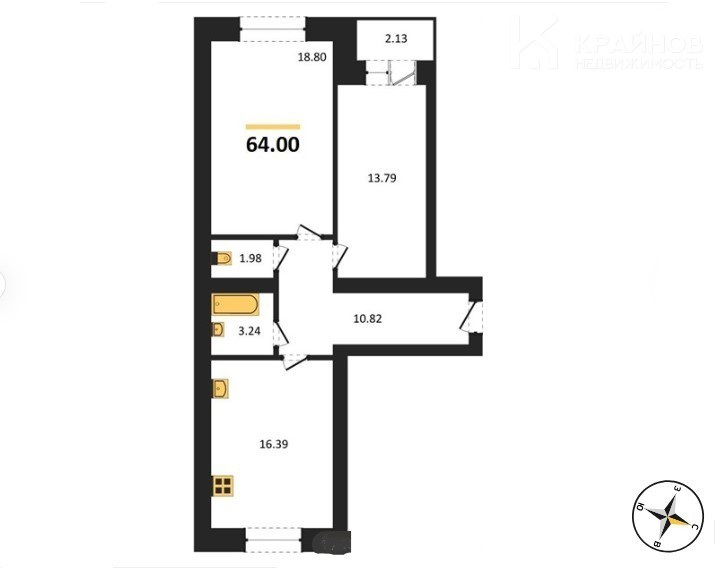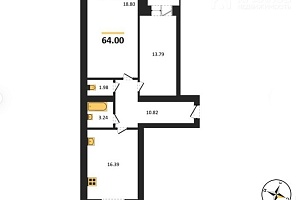 Кухня 16,39 кв.м Ванная комната 3,24 кв.м Туалет 1,98 кв.м Лоджия 2,13 кв.м