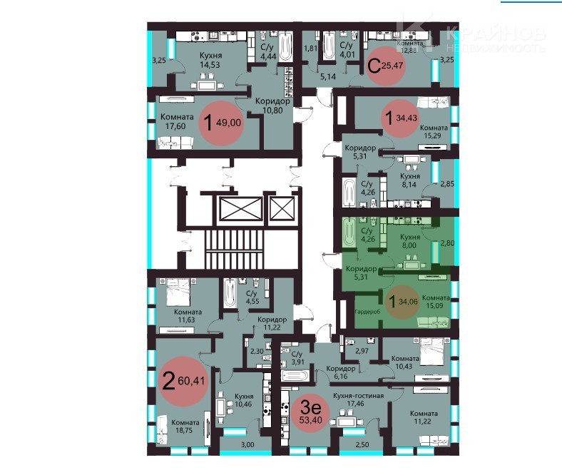 1-комн. квартира, 34.06 м², 4 этаж