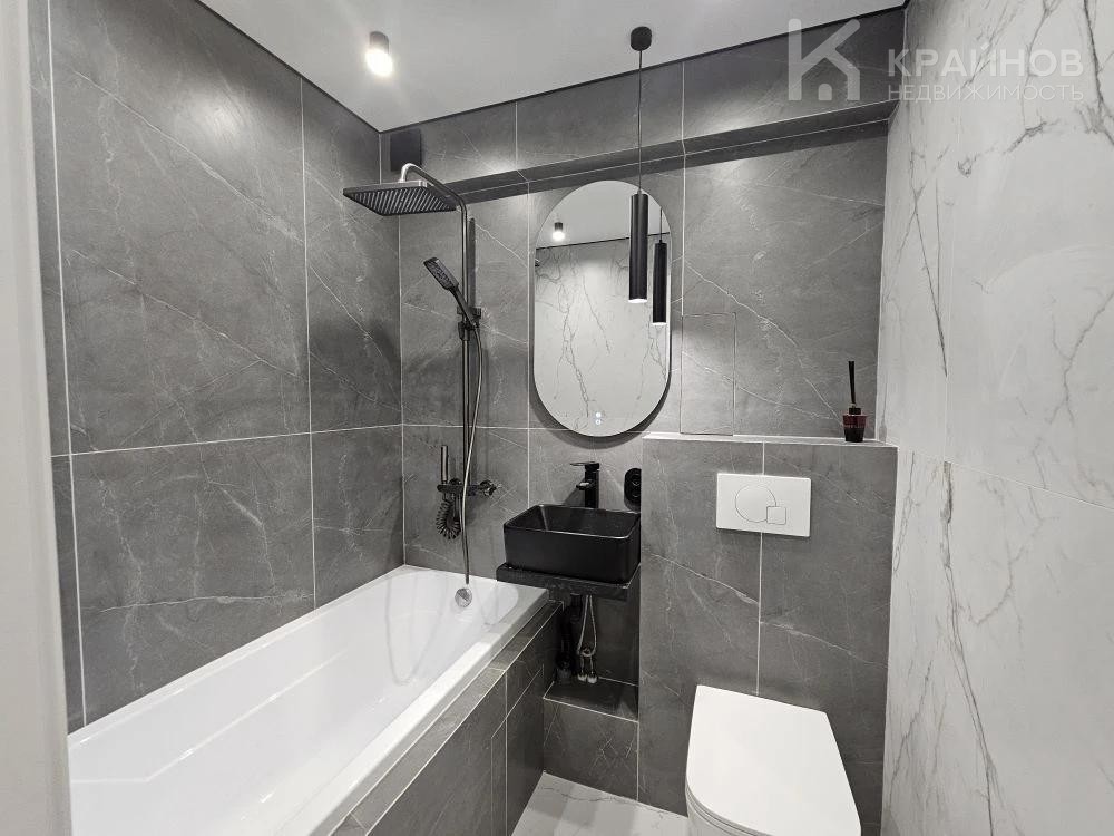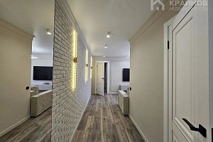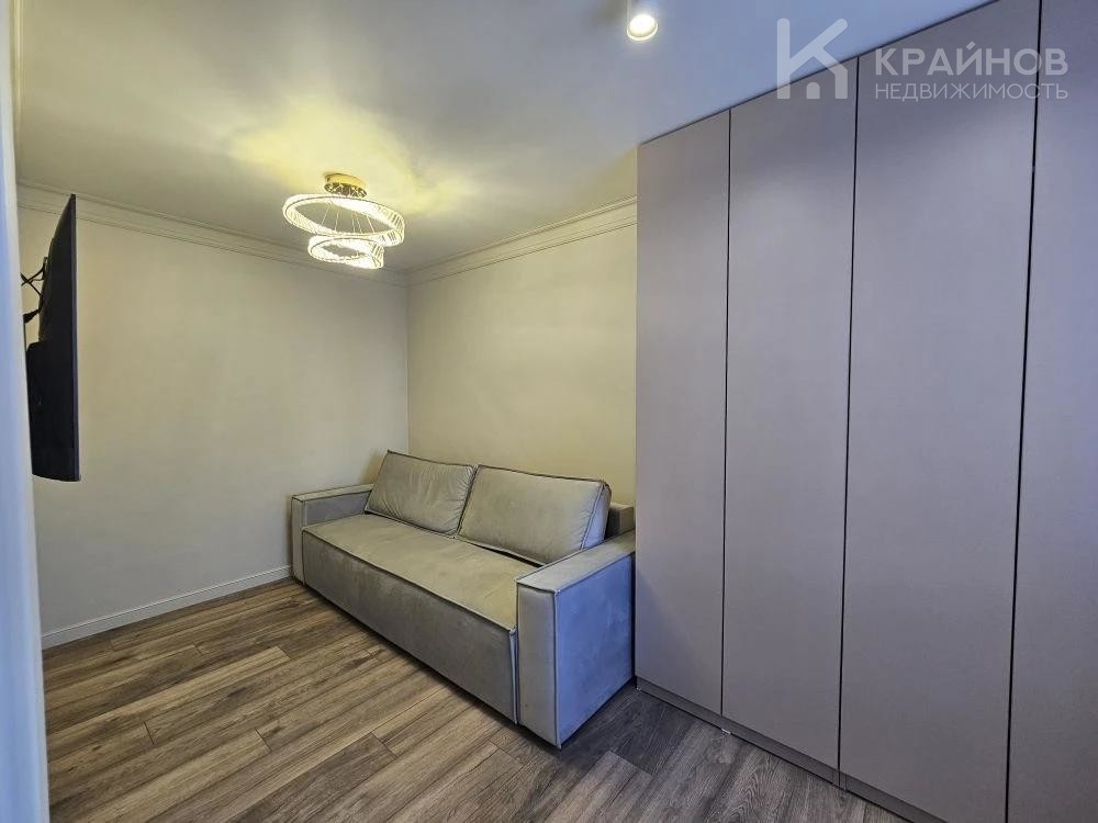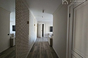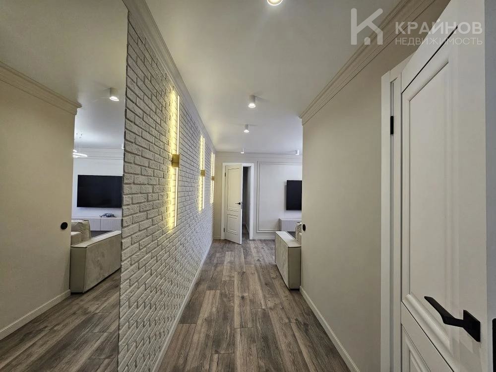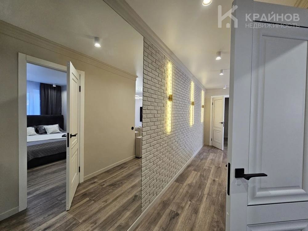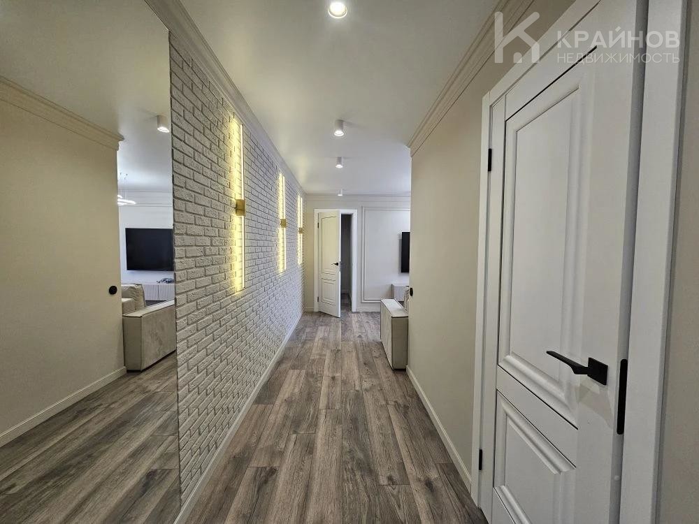 Стены покрашены, с современными вставками, много дополнительного света, красивые дизайнерские люстры, точечные светильники, подсветка. На полу ламинат, входная группа кафель. В ванной современная плитка, сантехника. Натяжной потолок, скрытые багеты. Новая металлическая дверь Door Han.