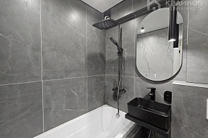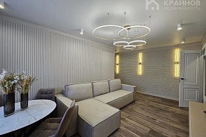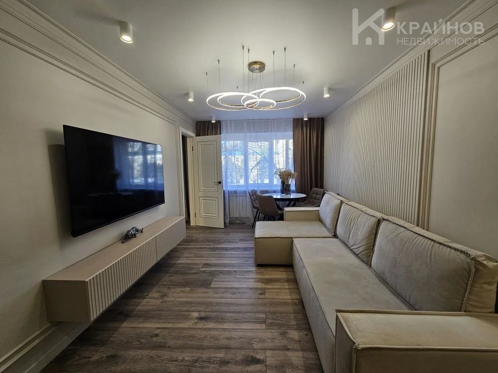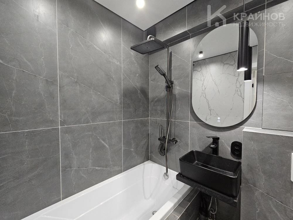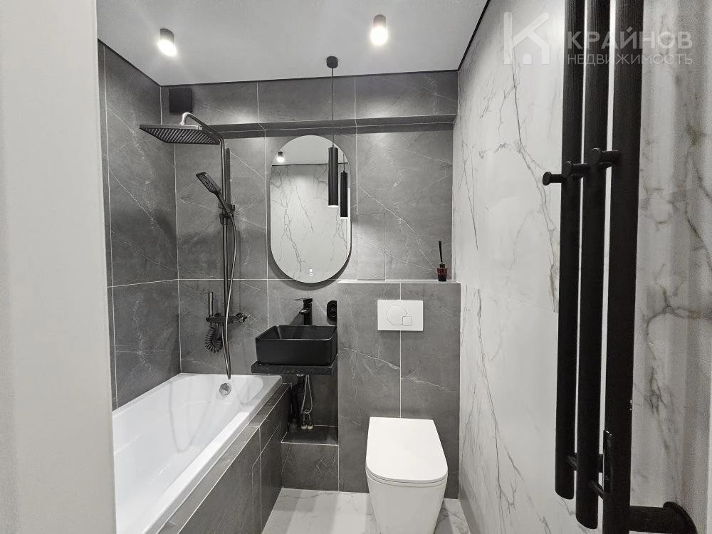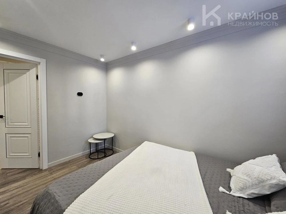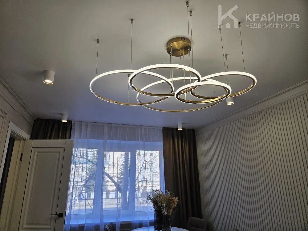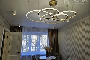 Стены покрашены, с современными вставками, много дополнительного света, красивые дизайнерские люстры, точечные светильники, подсветка. На полу ламинат, входная группа кафель. В ванной современная плитка, сантехника. Натяжной потолок, скрытые багеты. Новая металлическая дверь Door Han.