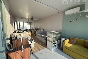 Интерьер: натяжной потолок со встроенными световыми линиями, тёплый пол с графитовым стержнем.