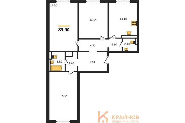 Квартира: 3 к 89,90 кв.м., 1 этаж в комплексе Яблоневые сады, 1 очередь, корп.14.4, сдача: 4кв. , этажей: 17, адрес Воронеж г., Загоровского ул., д. 5/3, Застройщик: ВЫБОР.