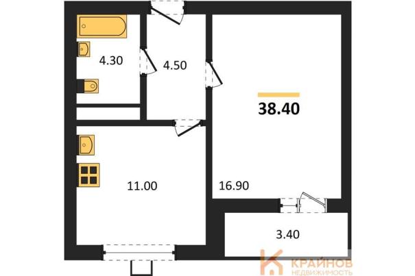 Квартира: 1 к 38,40 кв.м., 16 этаж в комплексе Крымский Квартал, 3 очередь, корп.1, сдача: 4кв. , этажей: 16, адрес Воронеж г., Конструкторов ул., , Застройщик: ДСК.