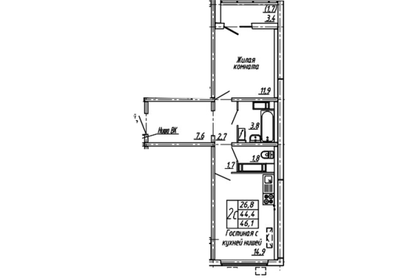 | Площадь | 46.10 |
