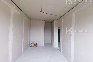 Отделка чистовая: электрика разведена, натяжные потолки, межкомнатные двери, стены отделаны фактурной штукатуркой, в санузлах плитка.