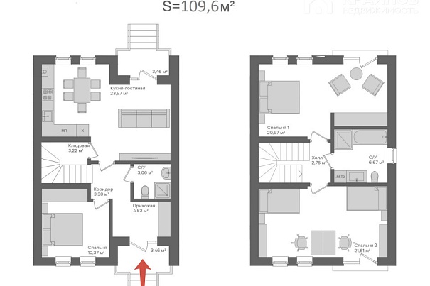В продаже от ЗАСТРОЙЩИКА таунхаус 109.6 кв.м + 310 кв.м. земли подходящие под семейную (даже с 2 несовершеннолетними), сельскую и IT ипотеку!