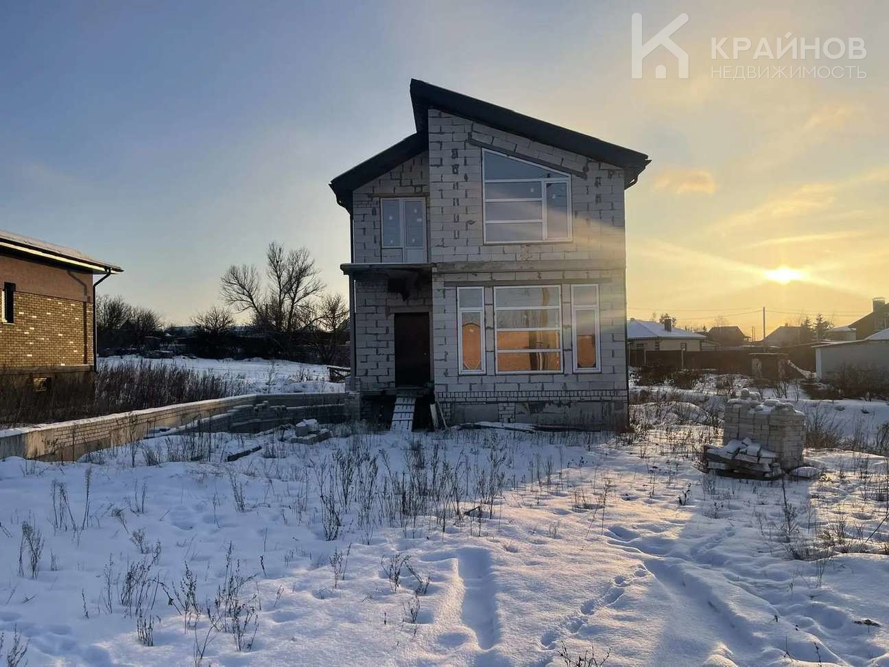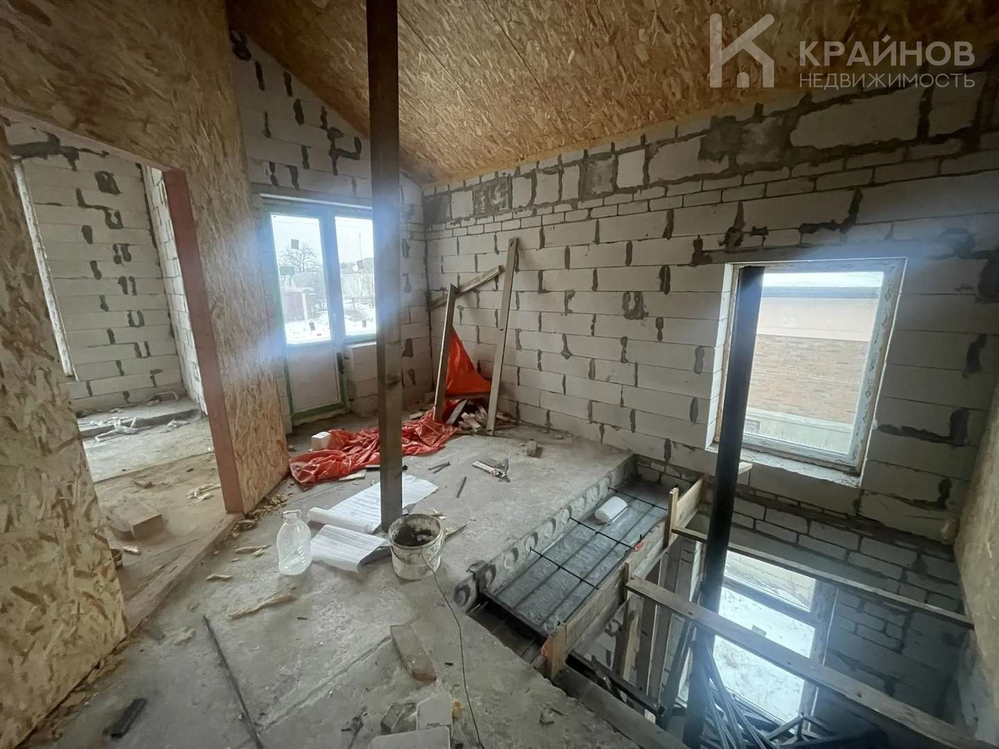 ДОМ площадью 195 квадратных метров, в черновой отделке с полноценным цокольным этажом, на котором можно разместить гараж, сауну или спортзал. Вход в цокольный этаж как из дома так и с улицы. На первом этаже большая кухня гостинная-47 квадратных метров, на втором этаже три просторные спальни.