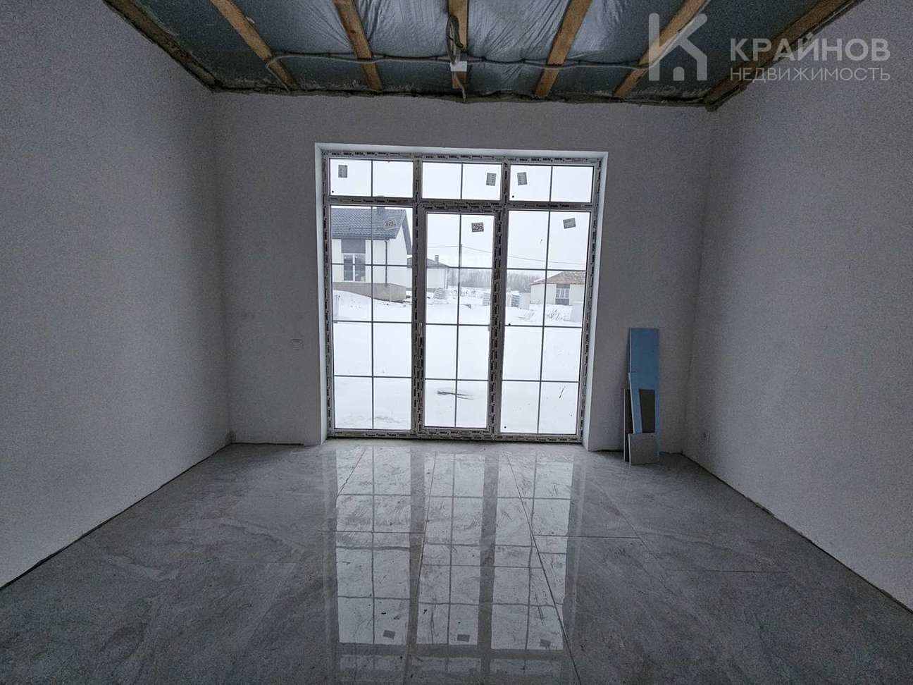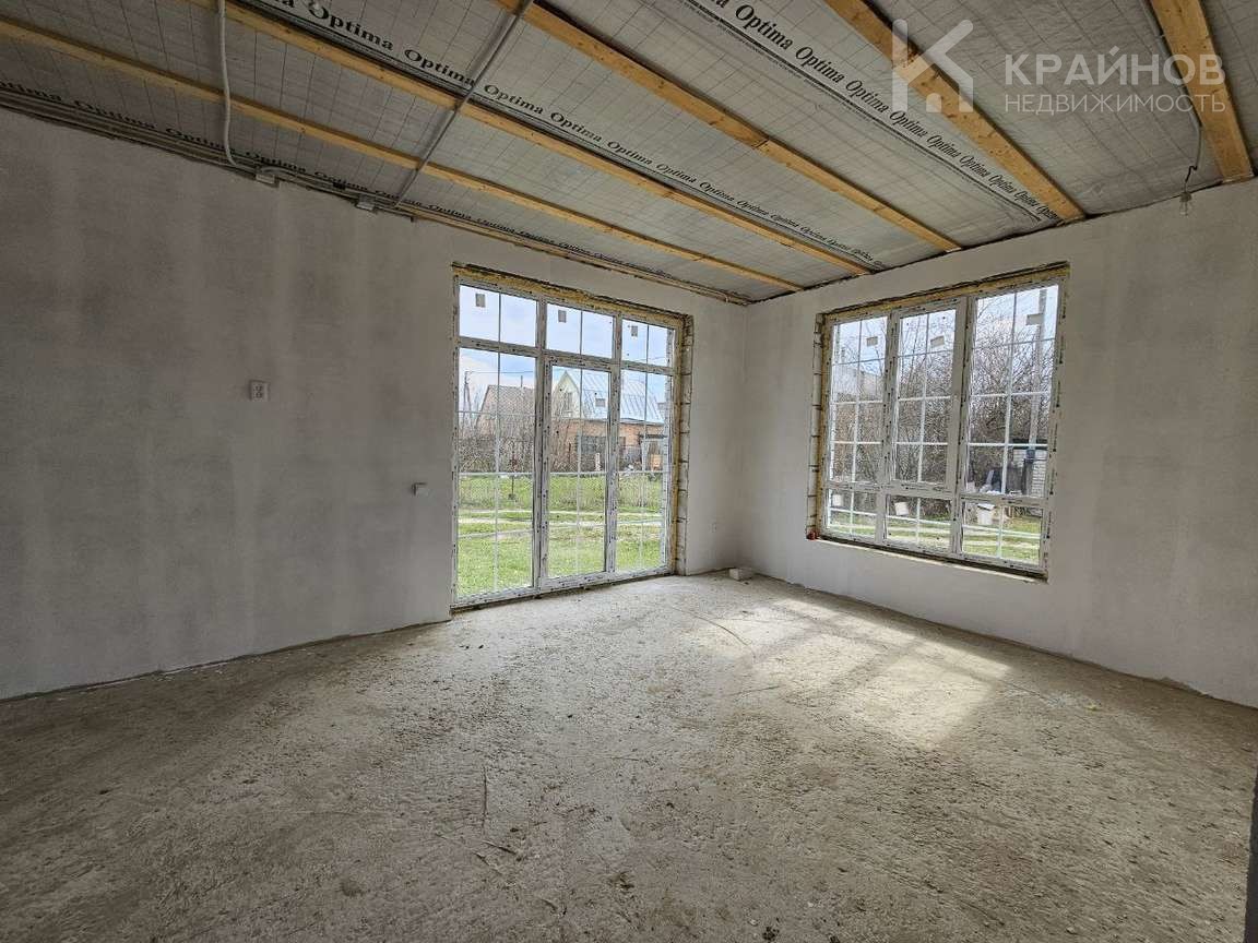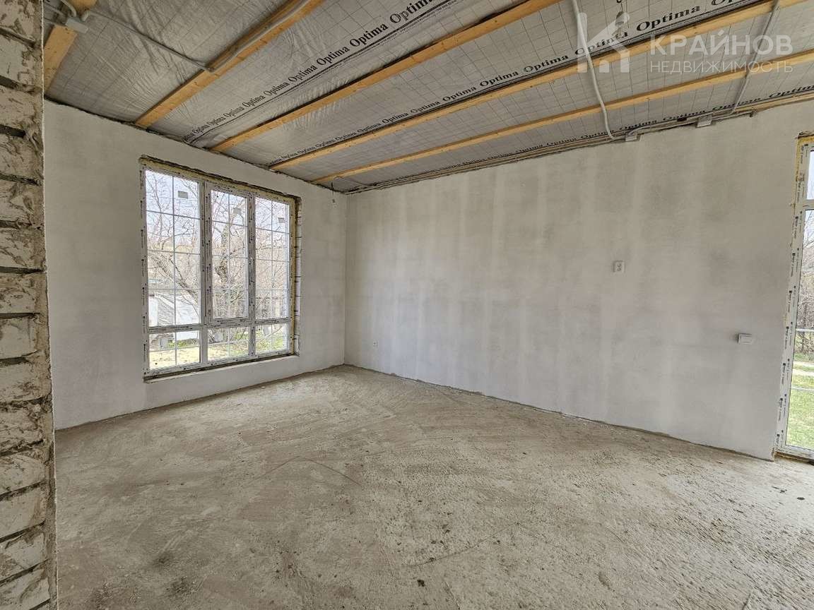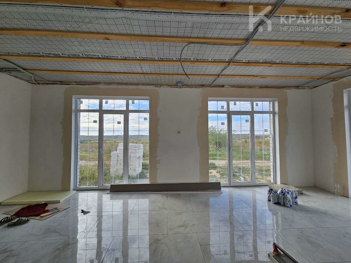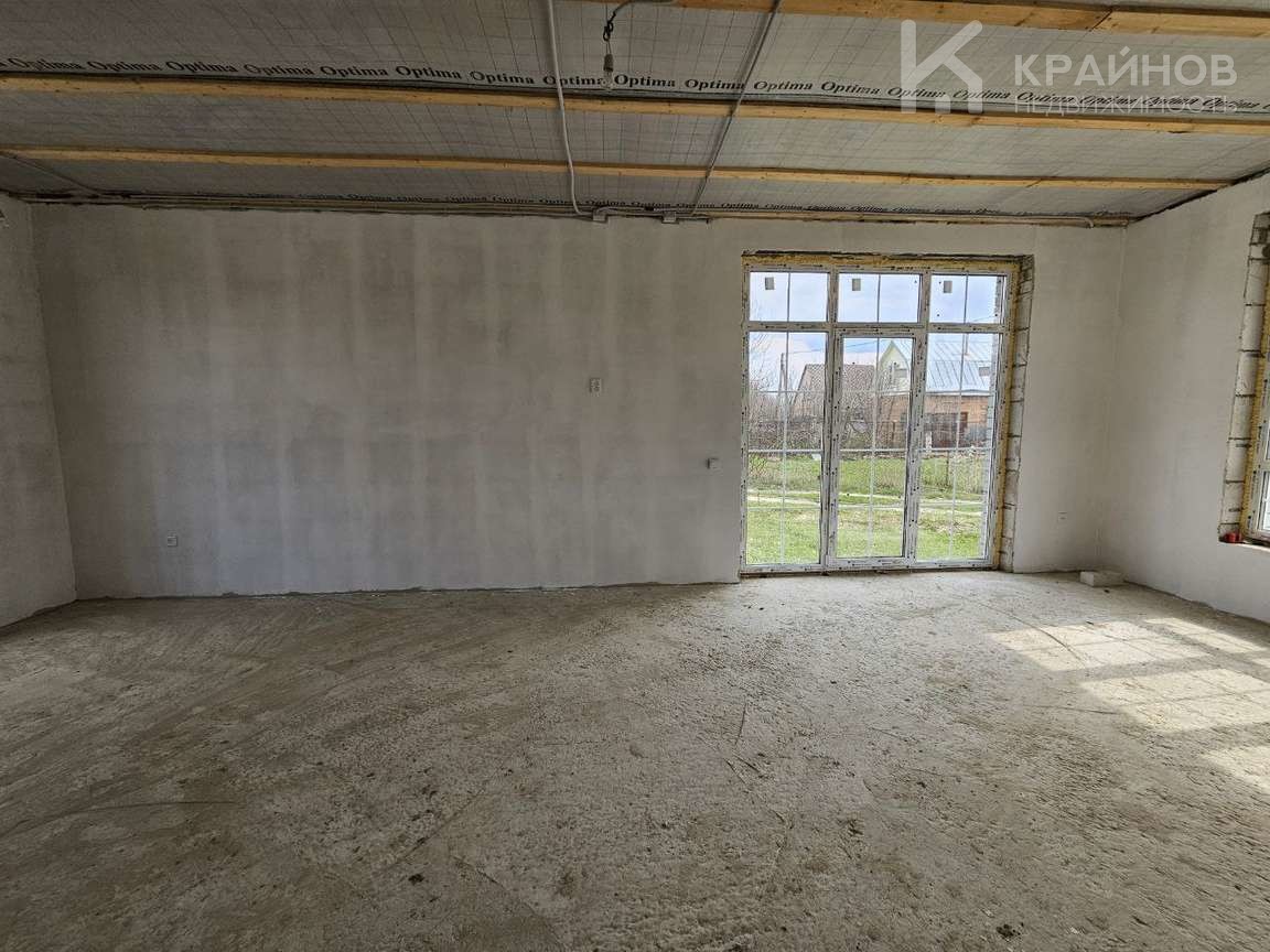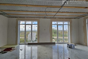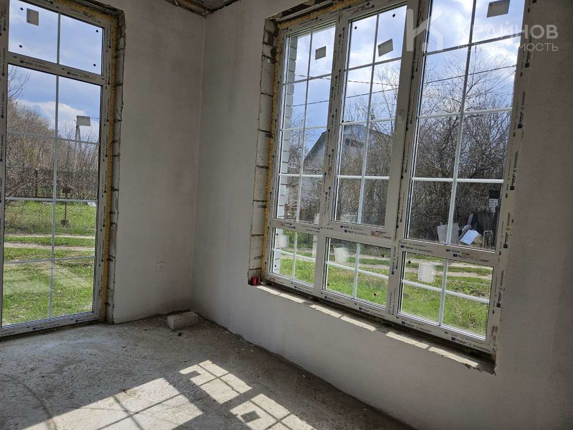 Теплый водяной пол, стяжка пола, стены под обои или покраску стен, электрическая разводка по всему дому. Большие витражные французские окна двухкамерные с тройным стеклопакетом, входная дверь 130 см. Планировка удобная, ничего лишнего, просторная кухня гостиная с прекрасным видом на луг. Скважина, септик из двух колец.