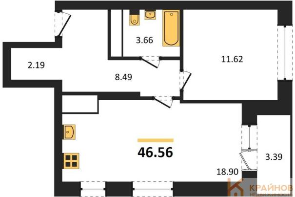 1-комн. квартира, 46.56 м², 23 этаж