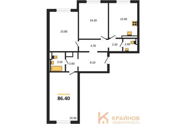 Площадь: 86.40м2