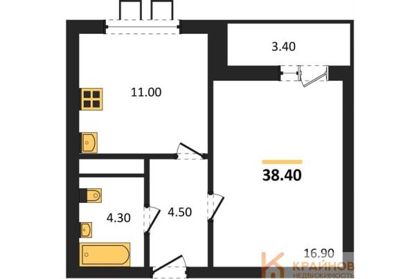 Квартира: 1 к 38,40 кв.м., 16 этаж в комплексе Крымский Квартал, 3 очередь, корп.1, сдача: 4кв. , этажей: 16, адрес Воронеж г., Конструкторов ул., , Застройщик: ДСК.
