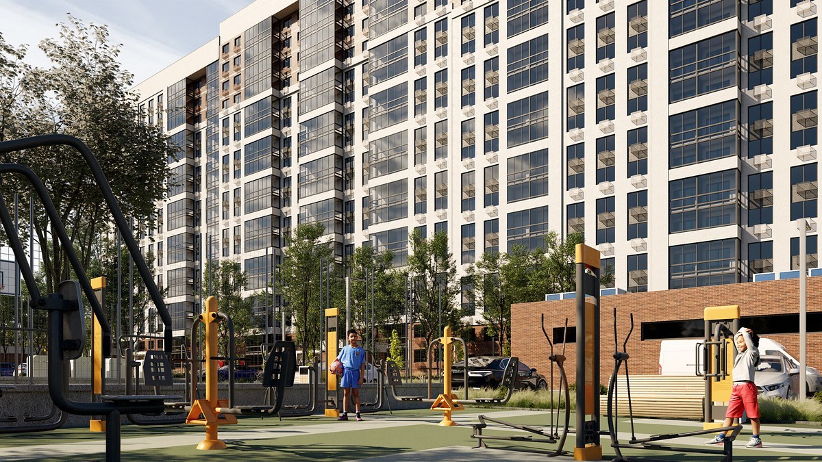На территории жилого комплекса предусмотрены безопасные детские площадки для маленьких жителей, а для подростков и взрослых — оборудованные спортивные площадки для игры в футбол и баскетбол, а также воркаут-зоны с тренажерами. Закрытая территория обеспечивает безопасность и спокойствие для всех жильцов.
