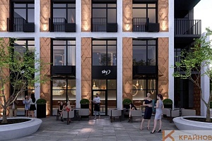 Фасад здания с панорамными окнами наполняет квартиры светом. Мы создали безбарьерную среду, зоны ожидания и велопарковки для вашего удобства. В отделке использованы натуральные материалы: дерево и мрамор.