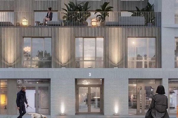 Архитектура и дизайн: Лаконичный фасад с ночной подсветкой. Просторные вестибюли без ступеней и светлые входные группы обеспечивают визуальный контакт с двором. В отделке использованы натуральные материалы.