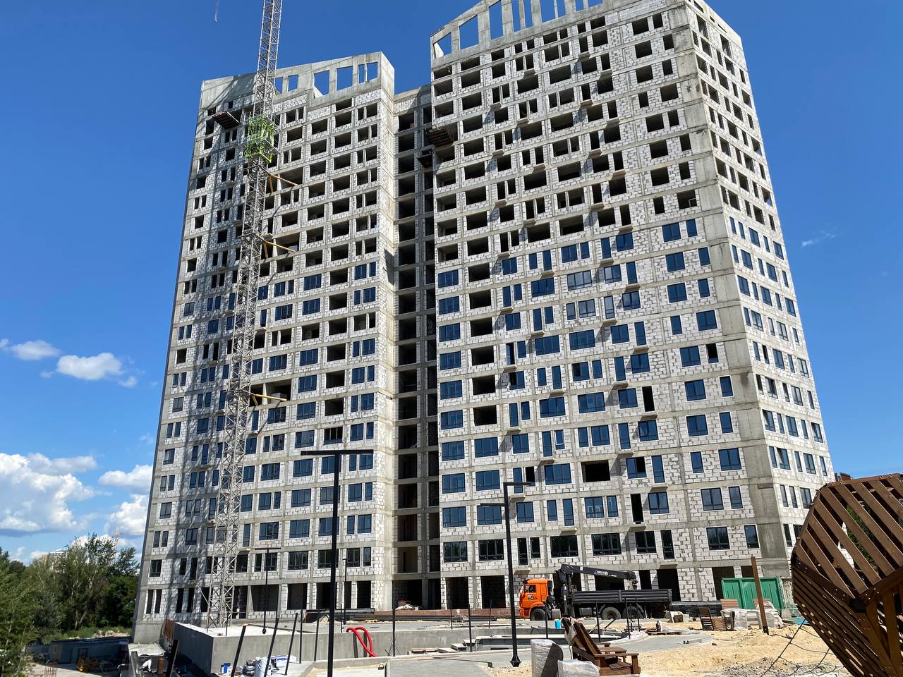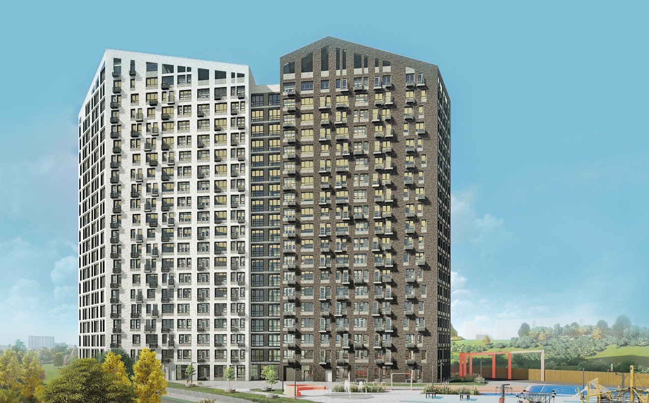 • Два корпуса высотой 23 и 21 этаж с авторскими фасадами и панорамными окнами.
