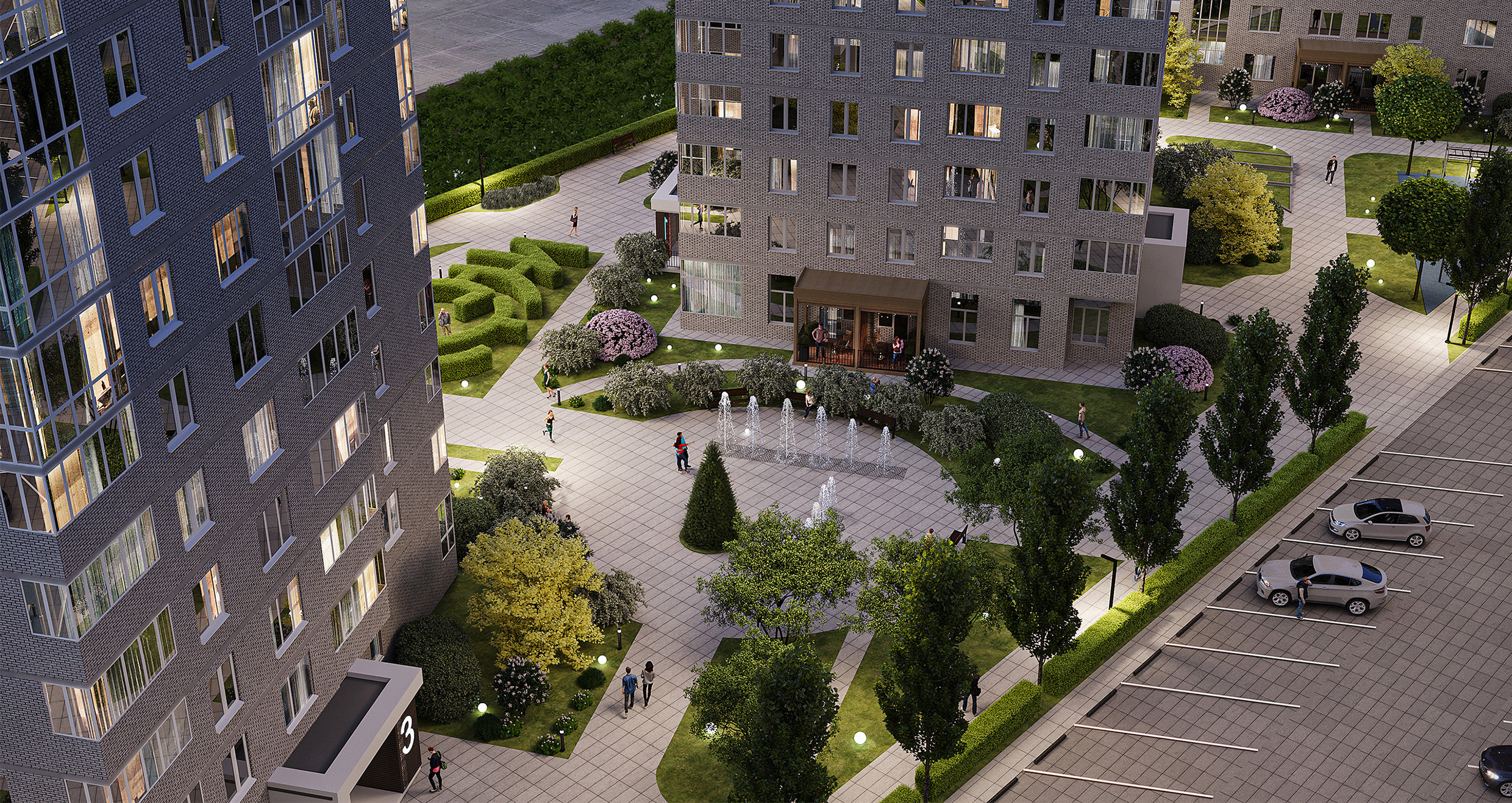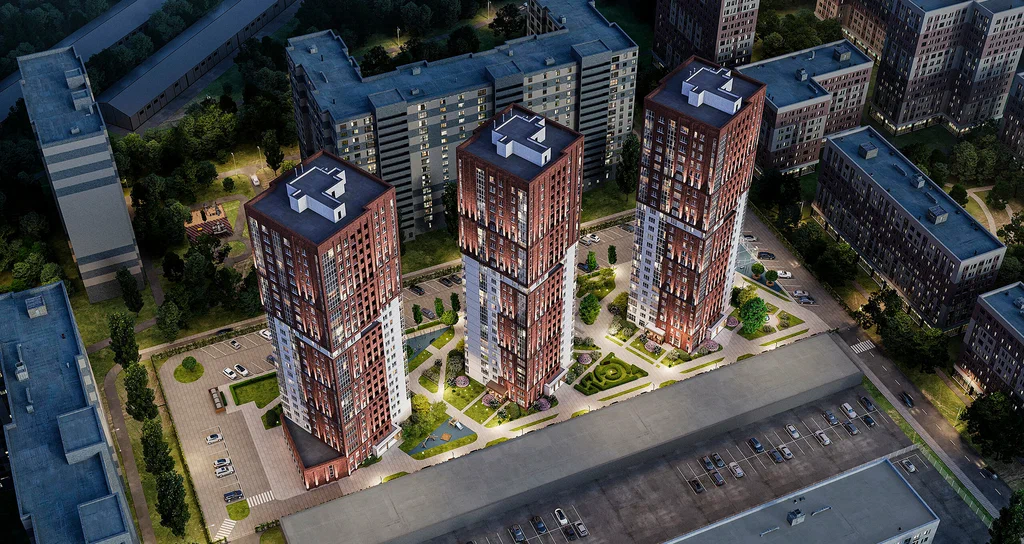 Большая часть квартир предлагает великолепный вид на город благодаря нелинейной посадке домов, что исключает «окна в окна».